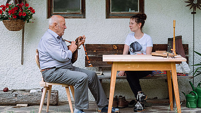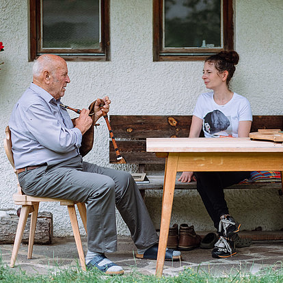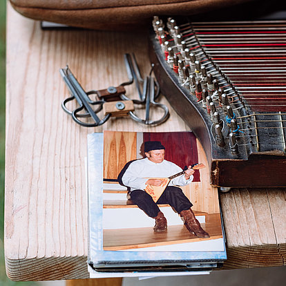 Hans Jocher: Das war eine Zither, die mir 1944 ein Onkel geschenkt hat. Sie ist heute ungefähr 160 Jahre alt und ich spiele immer noch darauf. Ein Vorläufer der Zither ist ja das Raffele, mit dem bin ich in verschiedenen Filmen zu sehen. Zum Beispiel in „Der Tote vom Sarntal“ oder „Der Judas von Tirol“.
