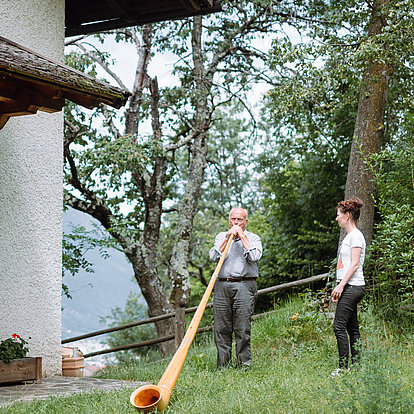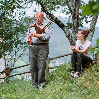 Der Multiinstrumentalist Hans Jocher wurde 1933 auf dem Frötscherhof in Obermellaun geboren. Mit elf Jahren erlernte er sein erstes Instrument, die Zither. Sehr bald kamen Querflöte, Gitarre und viele andere Instrumente hinzu – insgesamt spielt Hans Jocher mehr als 23 Instrumente. Bereits als Jugendlicher sang er im Kirchenchor, spielte im Kirchenorchester und absolvierte auch einen Kapellmeisterkurs. Er besuchte die Lehrerbildungsanstalt in Meran und arbeitete bis zu seiner Pensionierung als Grundschullehrer in St. Andrä. Er leitete mehrere Orchester und Chöre, unter anderem den gemischten Chor der Lehrerbildungsanstalt und eine Mädchensinggruppe im Kloster der Englischen Fräulein. Er trat als Musikant in verschiedenen Filmen und Theaterstücken auf und spielt und singt auch heute noch gerne Volksmusik für Einheimische und Gäste.
