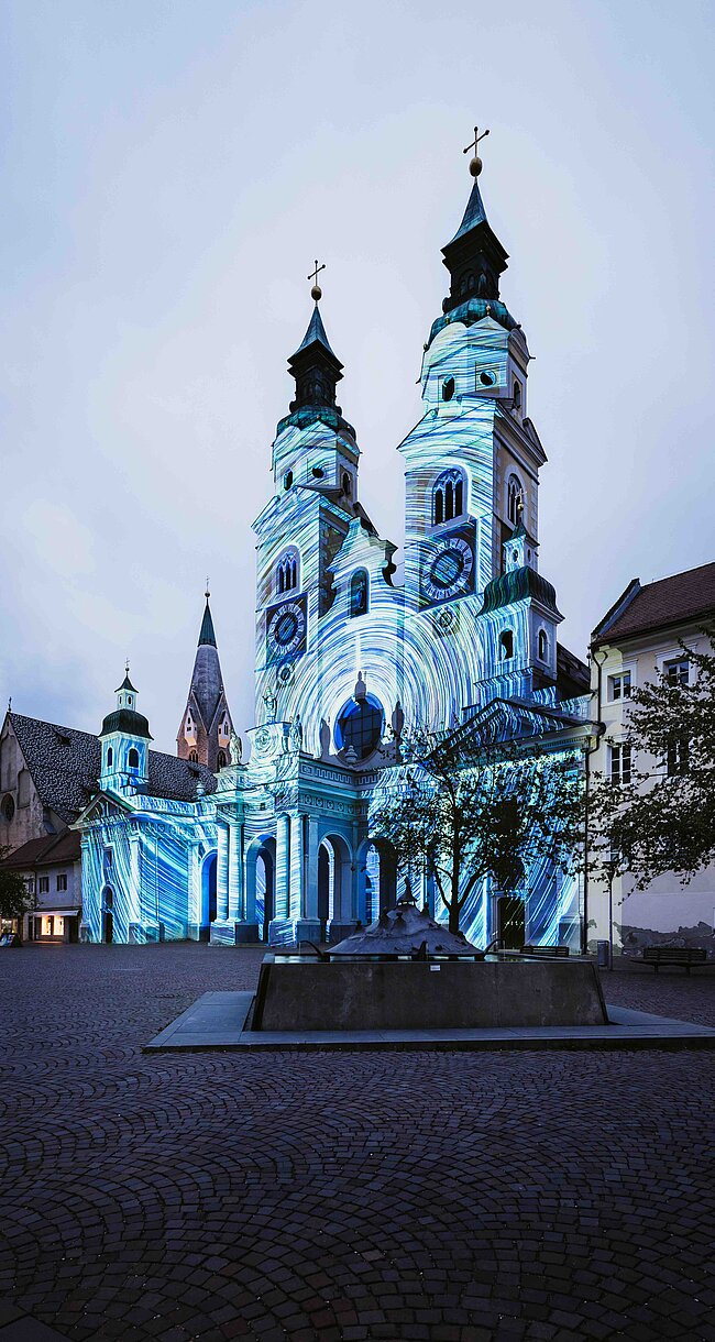 Die Altstadt Brixens ist ein architektonisches Juwel mit malerischen Plätzen, verwinkelten Gassen und prachtvollen Bauten – perfekte Kulisse für besondere Events. Der älteste Stadtteil liegt jenseits des Eisacks, erreichbar über die Adlerbrücke. Der Fluss war stets Fluch und Segen zugleich, sein „blaues Gold“ – das Wasser – prägt die Stadt bis heute. Alljährlich im Mai feiert Brixen das Water Light Festival: Künstler aus aller Welt verwandeln Wasserorte in leuchtende Installationen und eröffnen berührende Perspektiven auf diese kostbare Ressource.