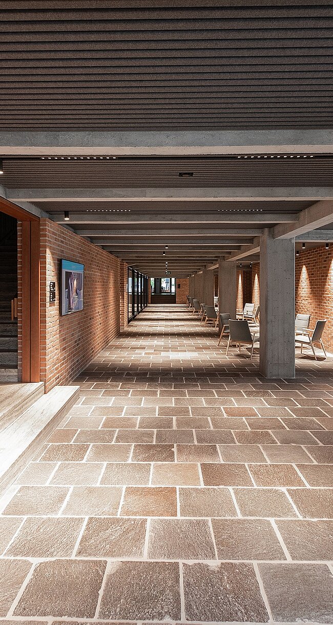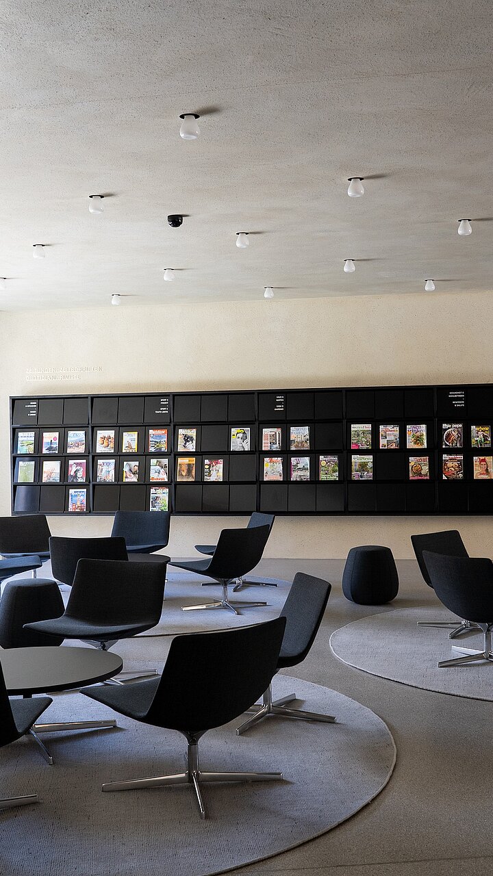 Da wo Bücher sind, fühlt man sich daheim. Wie ein großes Wohnzimmer präsentiert sich der Gebäudekomplex am Domplatz, der die Stadtbibliothek von Brixen beheimatet. In Anlehnung an die historische Bausubstanz der Altstadt, besticht der moderne Baukörper durch seine überdimensional großen Erker, die weitläufige Ein- und Ausblicke auch in die Welt der Bücher bieten.