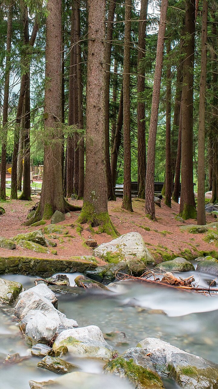 Wassertreten in eiskaltem Wasser. Das ist abhärtend und kreislauffördernd. Die Kneippanlage liegt am Rande des Dorfes Vahrn und verbindet kneippen mit Vergnügen.