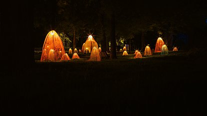 "Underworld" ist eine Installation aus leuchtenden Formen, die eine imaginäre Unterwasserwelt darstellen.