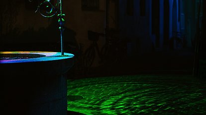 In dieser Installation wird eine Wasseroberfläche in eine "flüssige Linse" verwandelt, in der Wellen erzeugt werden erzeugt werden und drei Lichtquellen brechen, die sich im Raum ausbreiten. Magnetventile lassen die Tropfen an verschiedenen Punkten in bestimmten Abständen fallen und erzeugen so komplexe Formen, Wellen, Farben und Interferenzsäume. Das Werk ist eine symbolische und hypnotische und Wahrnehmungsübung, in die das Publikum subjektiv eintauchen muss.