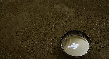 Für die Installation MOON BOWL nutzt Ken Matsubara traditionelle Haushaltsgefäße als Behältnisse für digitale Animationen. Zu sehen sind digitale Animationen schwarz-weißer Fotografien ausgewählter Gegenstände, die in endlosen Wiederholungen zerbrechen, im Dunkel verschwinden und wieder an der Oberfläche erscheinen.