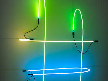 François Morellet (1926–2016) frühes Werk wurde von der Strömung der Konkreten Kunst beeinflusst, die Abstraktion und geometrische Formen in den Vordergrund stellte. Er experimentierte mit einer Vielzahl von Materialien, darunter Neon, Metall und Farbe und bezog oft mathematische Prinzipien und Systeme in sein Werk ein. In den 1960er Jahren schloss er sich der Minimal Art Bewegung an und begann, großformatige Installationen und «Environmental Art» zu schaffen.
