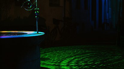 In questa installazione, una superficie d'acqua viene trasformata in una "lente liquida" in cui le onde vengono generate e rifrangono tre fonti di luce che si propagano nello spazio. Le elettrovalvole permettono alle gocce di cadere in diversi punti con ritmi programmati, creando forme complesse, onde, colori e frange di interferenza. L'opera è un esercizio contemplativo, ipnotico, simbolico della percezione in cui il pubblico deve immergersi soggettivamente.